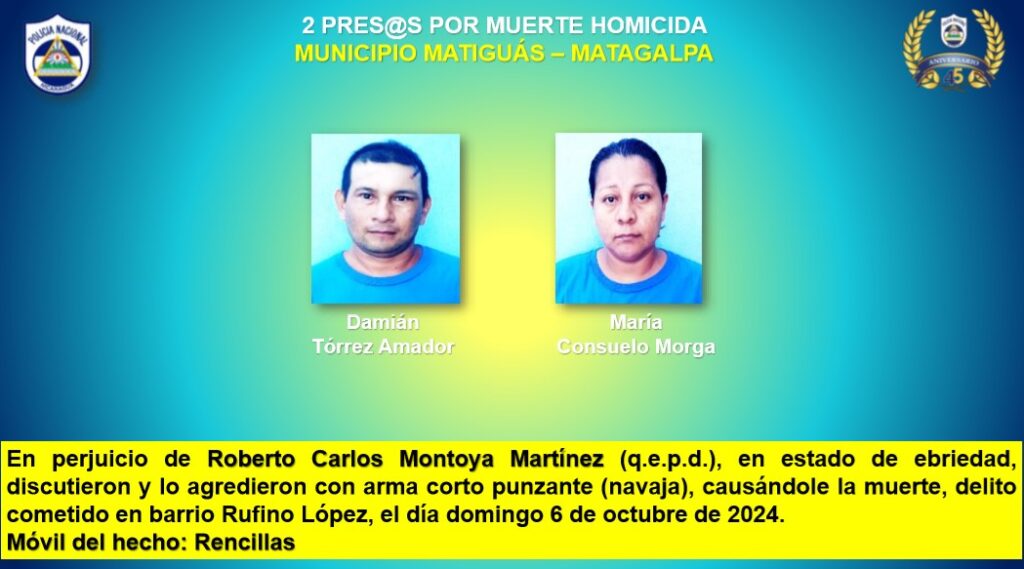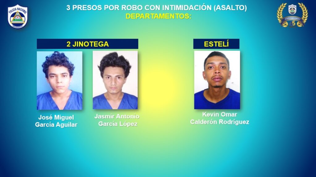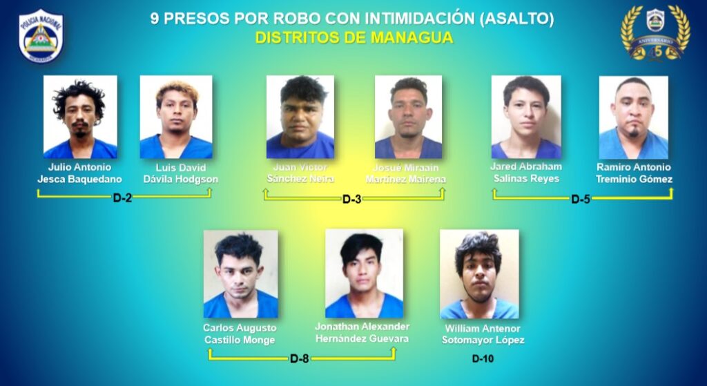 Como parte del Plan de Seguridad Ciudadana implementado en Nicaragua del 7 al 13 de octubre la Policía Nacional capturó a 3 homicidas, dos de estos en Matagalpa y uno en Chinandega , asimismo, se detuvieron a 9 personas señaladas de cometer asaltos en Managua, informó este lunes el Inspector General Jaime Vanegas.