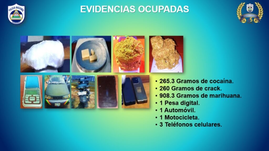 De igual forma seis abastecedores de drogas fueron detenidos en varios departamentos, uno en Matagalpa, 2 en Masaya, uno en Bluefields y 2 en Río San Juan, a estos se les ocuparon como evidencias. 265.3 gramos de cocaína, 260 gramos de crack, 908 gramos de marihuana, una pesa digital, un automóvil, una motocicleta y 3 celulares.