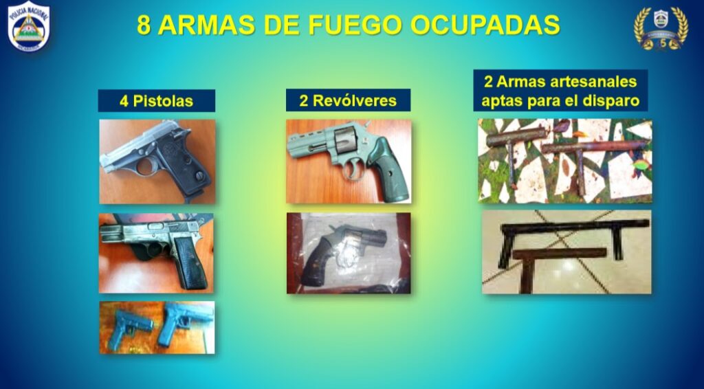 El funcionario detalló que dentro de las evidencias ocupadas a tres delincuentes que operaban entre Jinotega y Estelí se encuentran: 8 armas de fuego, 4 pistolas, 2 revólveres y 2 armas artesanales.