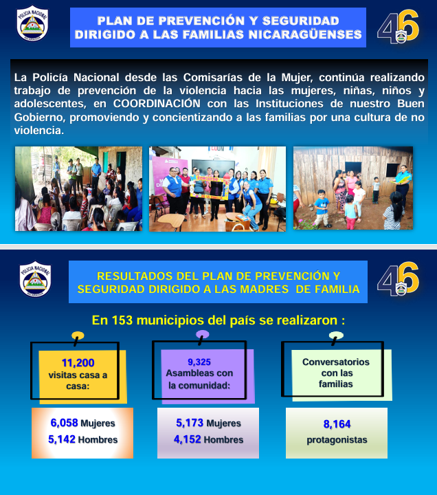 La funcionaria policial, externó que dentro del Plan de Prevención y Seguridad de la Comisaría de la Mujer, dirigido a las madres de familia, se continúa realizando trabajo de prevención de la violencia hacia las mujeres, niños, niñas y adolescentes, en coordinación con las instituciones del gobierno, promoviendo y concientizando a las familias por una cultura de no violencia.