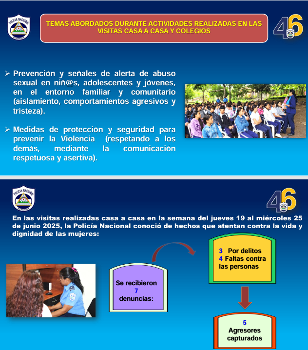 “Como resultado, en los 153 municipios del país se realizaron 11 mil 200 visitas casa a casa. De estas, las protagonistas mujeres eran 6 mil 58 y protagonistas hombres 5 mil 142. También se realizaron un total de 9 mil 325 asambleas con la comunidad, siendo 5 mil 173 mujeres y 4 mil 152 hombres. Realizamos también conversatorios con las familias, con un total de 8 mil 164 protagonistas”, detalló Obando.