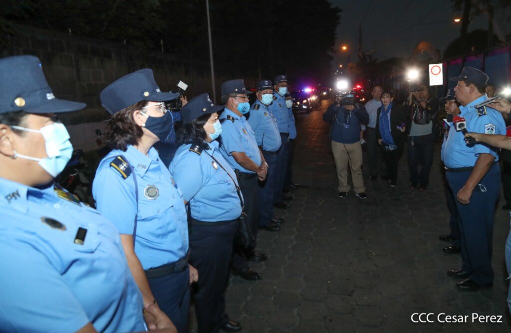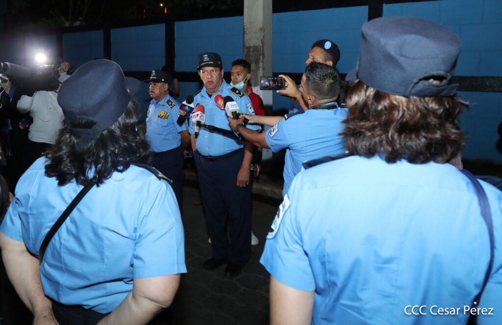 “En cumplimiento por lo ordenado por nuestra jefatura suprema Comandante Presidente Daniel Ortega y la Vicepresidenta Rosario Murillo (…), garantizar la seguridad y protección a lo interno y en el entorno de cada centro escolar” indicó el comisionado.