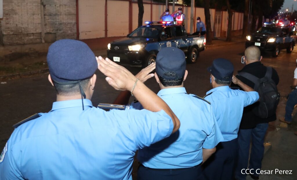 “En cumplimiento por lo ordenado por nuestra jefatura suprema Comandante Presidente Daniel Ortega y la Vicepresidenta Rosario Murillo (…), garantizar la seguridad y protección a lo interno y en el entorno de cada centro escolar” indicó el comisionado.