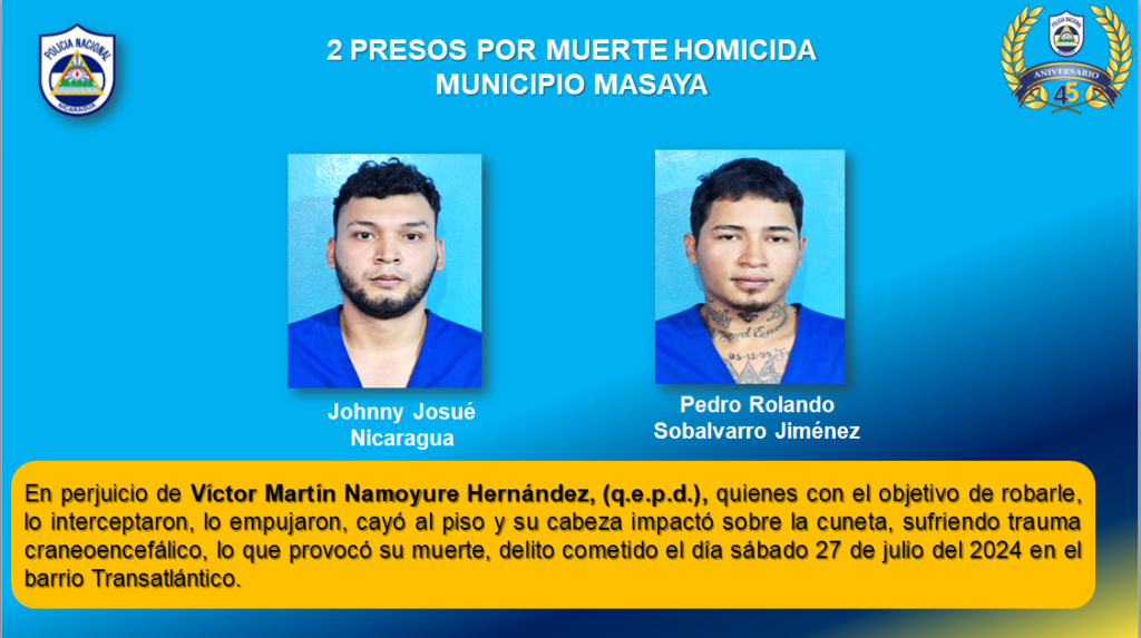 Entre los homicidas capturados se encuentran dos sujetos del municipio de Masaya y uno de Wiwilí, en Jinotega.