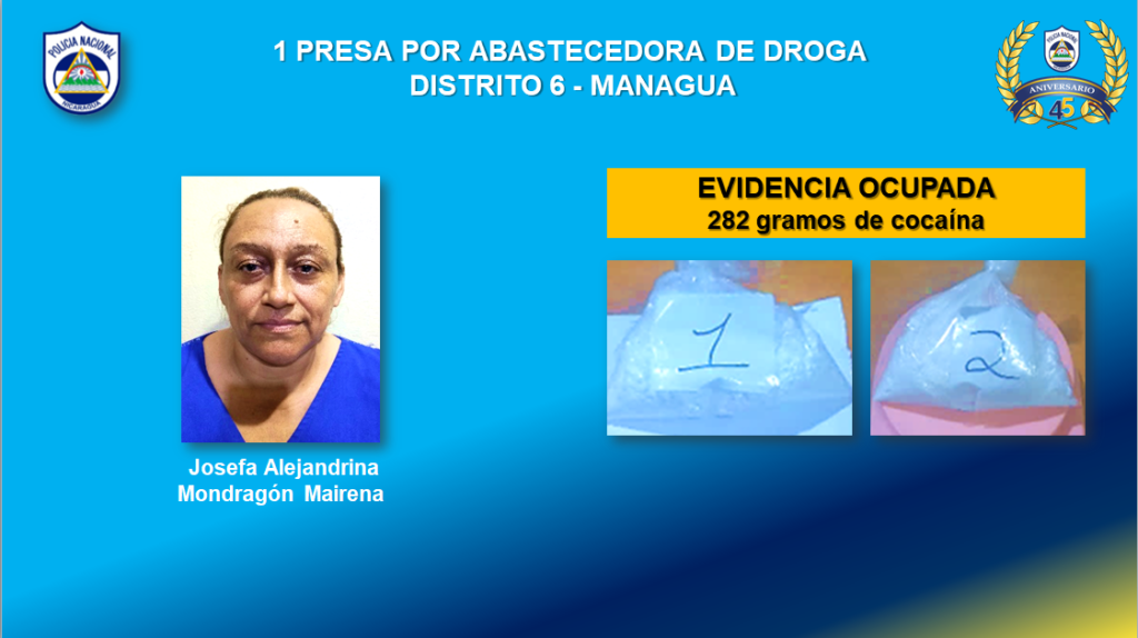Por abastecimiento de droga se encuentra presa una mujer del Distrito VI de Managua y un hombre en el municipio de Palacagüina en Madriz.