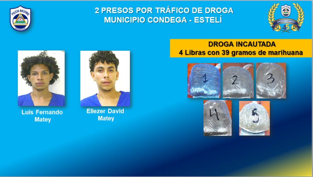 Dos presos por trafico de drogas en el municipio de Cárdenas, en Rivas y otros dos sujetos arrestados en la ciudad de Condega de Estelí