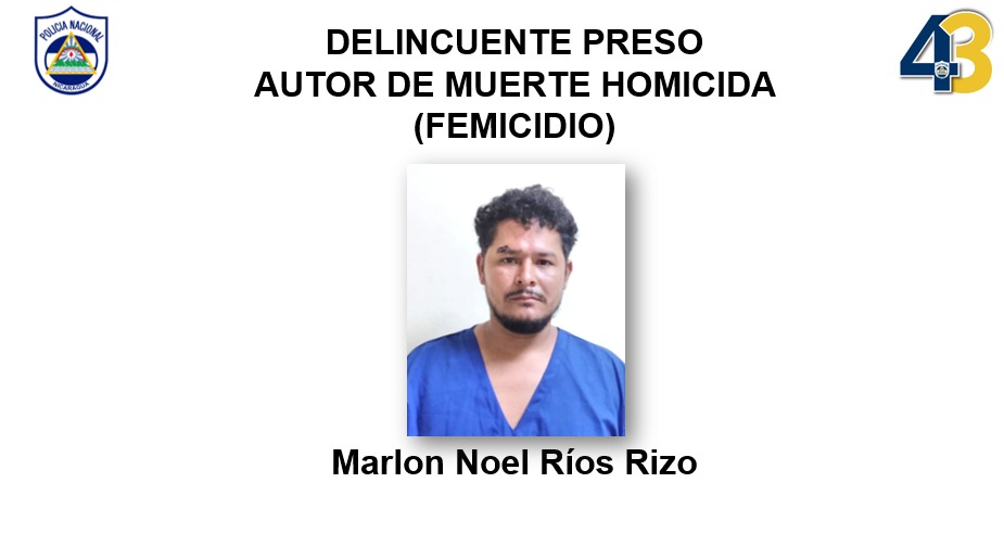 Marlon Noel Ríos Rizo 36 años, fue presentado este viernes por las autoridades de la Policía Nacional, como el autor del femicidio de Kenia Yosmari López Hernández, de 19 años de edad