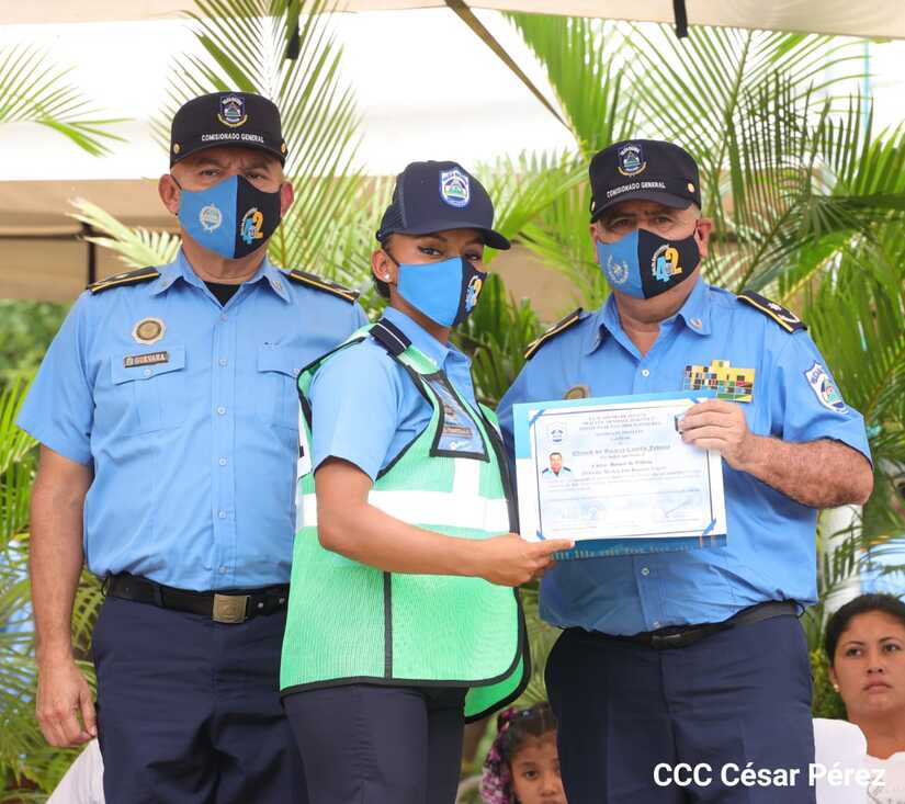 937 nuevos agentes policiales, de los cuales 327 son mujeres se graduaron en el primer curso básico de Policía 2022, que se llevó a cabo en la Academia Nacional Walter Mendoza, con la finalidad de poner en práctica los conocimientos adquiridos para garantizar la seguridad, la paz y tranquilidad de Nicaragua.