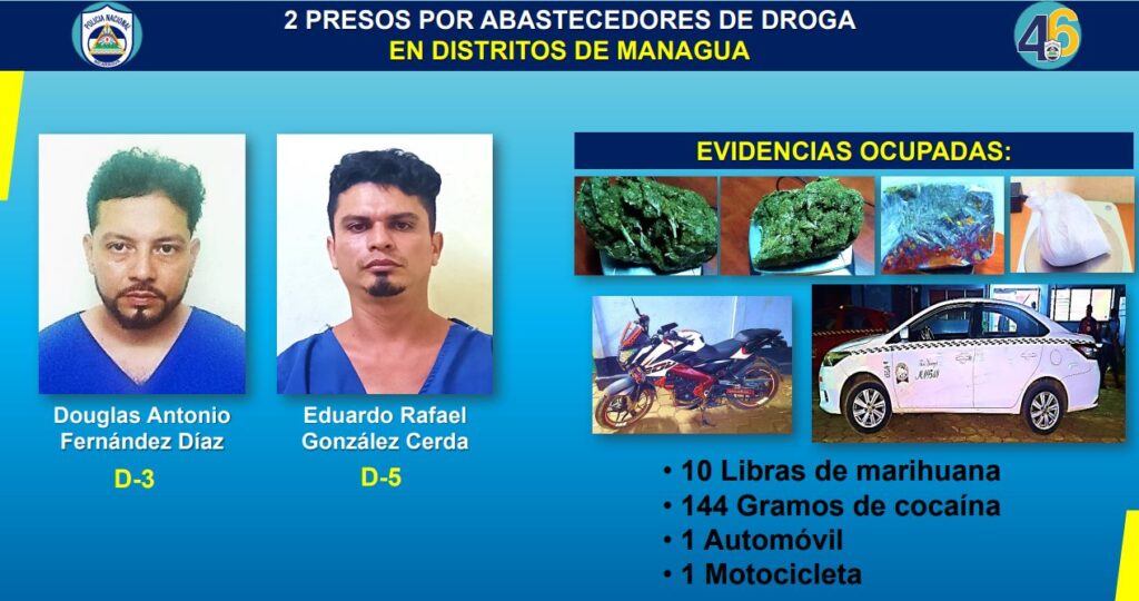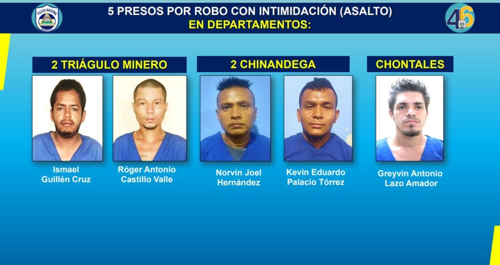 El informe destaca además, la detención de dos abastecedores de drogas en varios distritos de Managua y 13 señalados de cometer robos con intimidación en varios departamentos del país.