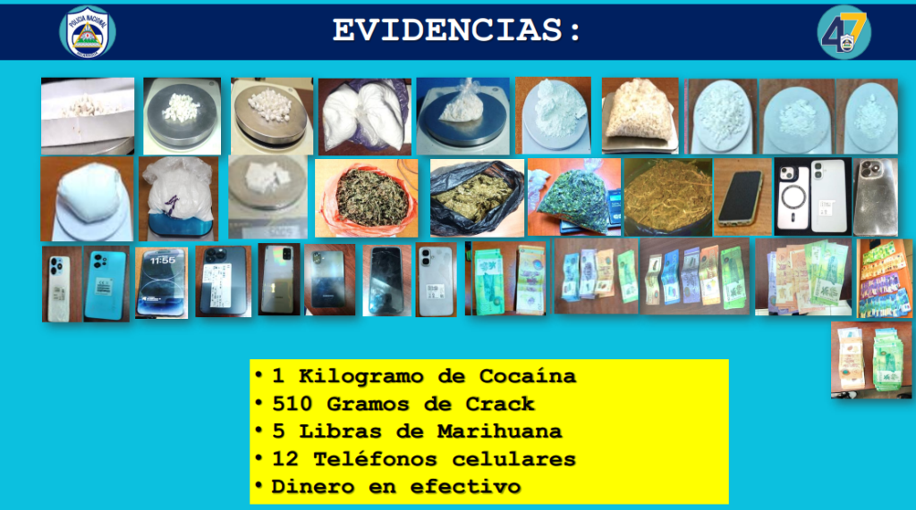 Durante los operativos, la policía ocupó como evidencias un kilogramo de cocaína, 510 gramos de crack, cinco libras de marihuana, 12 teléfonos celulares y dinero en efectivo.
