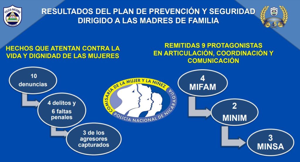Finalmente, la institución del orden público, dio a conocer que esta semana se inauguraron las Comisarías de la Mujer 358 en La Boquita y la 359 en Puerto Príncipe, Nueva Guinea en el Caribe Sur.