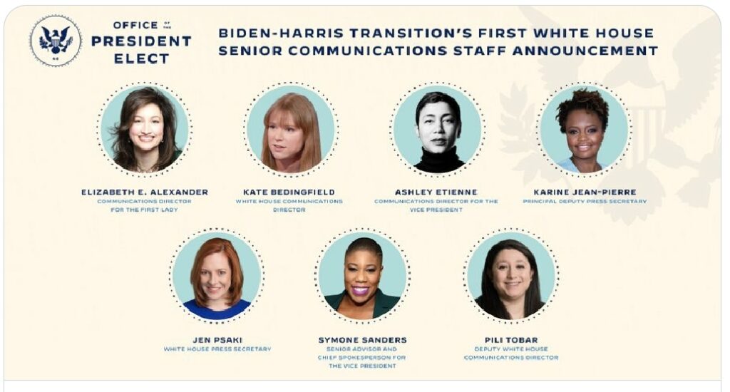 “Estas mujeres diversas, experimentadas y talentosas demuestran el compromiso continuo del presidente electo Biden para construir una Administración que se parezca a Estados Unidos”, reza el comunicado publicado en el sitio web del equipo de transición Biden-Harris.