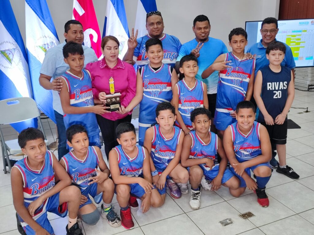 Las autoridades del Ministerio de Educación (MINED) y el Instituto Nicaragüense de Deportes (IND), realizaron este martes la premiación a los primeros lugares de los Juegos Nacionales Escolares en la categoría de minibaloncesto, resultando ganadores el equipo de niños de Bonanza, el segundo lugar fue para el Caribe Sur, el tercer puesto fue para Estelí y el cuarto para Rivas.