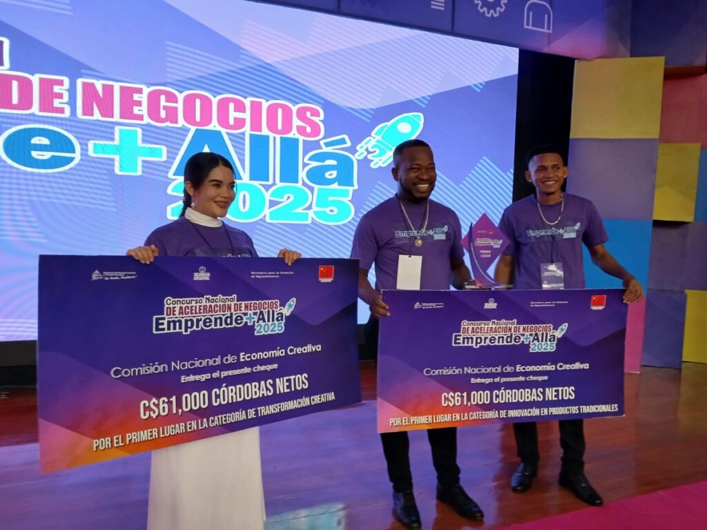 Subrayó que la plataforma Emprende+Allá viene impulsando este modelo de economía creativa que reconoce la creatividad y el talento de esos protagonistas como el motor principal para desarrollar Nicaragua, en su desarrollo humano y sostenible. Además que se apoya la promoción de la innovación y la identificación de oportunidades para su crecimiento y su desarrollo.