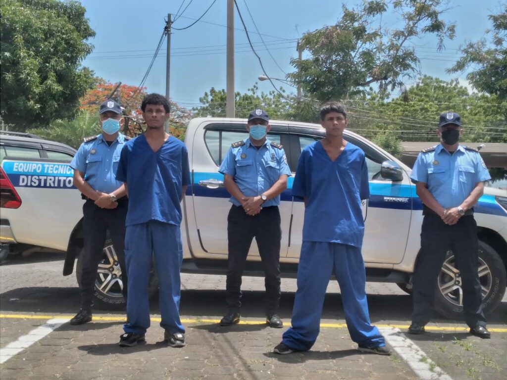La Policía Nacional presentó este viernes a Carlos Manuel Obando Maltes y Jostin Palacios Duarte García, como los autores del delito de homicidio en perjuicio de José Benito Escoto Navarrete, la madrugada del pasado 28 de junio del 2023, en el barrio Villa Vallarta de Managua, informó el Comisionado Mayor Farle Roa, Jefe policial del Distrito VI.