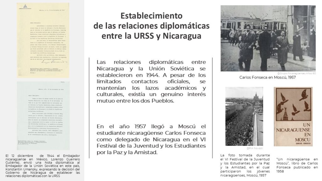 “La República de Nicaragua y su pueblo hermano también apoyaron a la URSS, mostrando su solidaridad, brindando el apoyo importante en los momentos difíciles, lo que también se refleja en los materiales de la exposición”, señaló la comunicación.