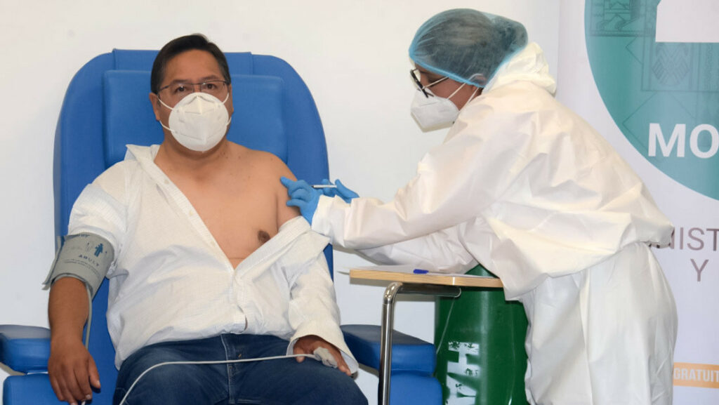 En Bolivia, actualmente el promedio diario de vacunación es de 52.000 personas por día. El 13 de mayo comenzó la inmunización de mayores de 50 años y, como el presidente tiene 57 años, le correspondía recibir la primera dosis del fármaco.