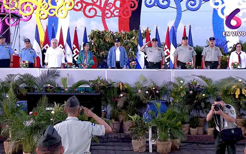 La ceremonia se celebró en la Plaza de la Fe, en esta capital a la que también asistió la vicemandataria Rosario Murillo, el comandante en jefe del Ejército, Julio César Avilés, el presidente de la Asamblea Nacional (parlamento) Gustavo Porras, la ministra de defensa, Rosa Adelina Barahona, así como altos oficiales de las Fuerzas Armadas y la Policía Nacional.