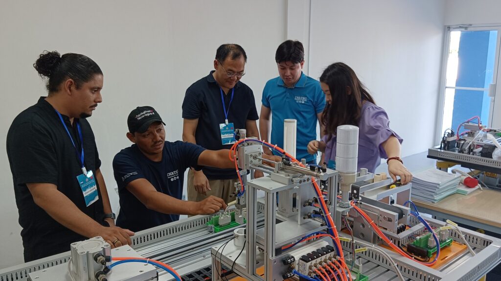 Comentó que en este centro, en una primera fase, se contará con kits de innovación práctica de ingeniería, línea de producción automatizada, línea de producción circular, robot industriales, dispositivos de formación de montaje eléctrico, equipos de formación de ingeniería de internet de las cosas, aplicaciones inteligente, formación de aplicaciones industriales típicas y manufacturas, entre otros.