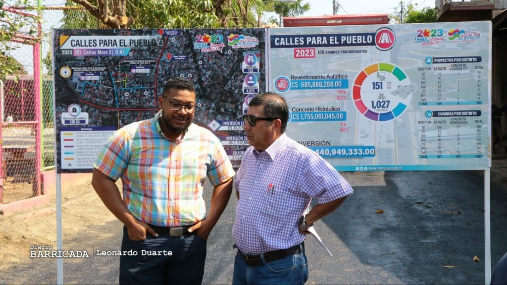 El emblemático Programa Calles para el Pueblo presenta un avance del 23.49%, para un total de 240 calles nuevas atendidas en lo que va del 2023, informó este miércoles el vicealcalde de la capital, Enrique Armas tras supervisar las nuevas obras de infraestructura vial en el barrio Carlos Marx en Managua.