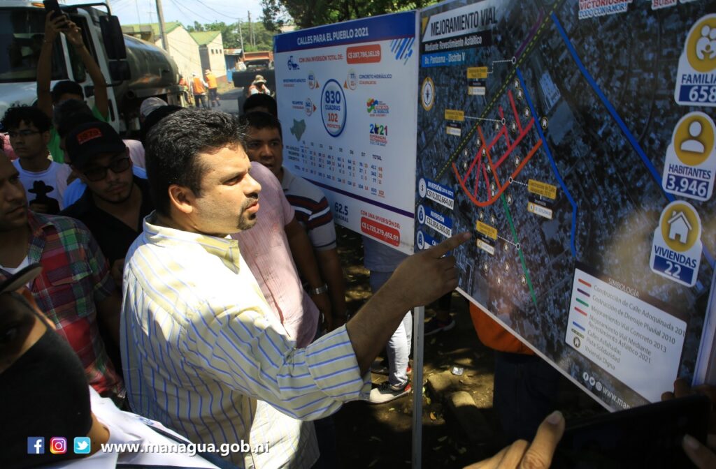 Moreno señaló que este proyecto de revestimiento asfáltico en el barrio Pantasma, cuenta con una inversión de 2 millones 56 mil córdobas y se beneficiarán “niños y niñas que caminarán a sus escuelas en mejores condiciones, conductores de vehículos selectivos, comerciantes que podrán mover más rápido sus productos y por supuesto, todas las familias que mejorarán su movilidad, tanto en invierno como verano, mejorando también sus condiciones de higiene y salud”.