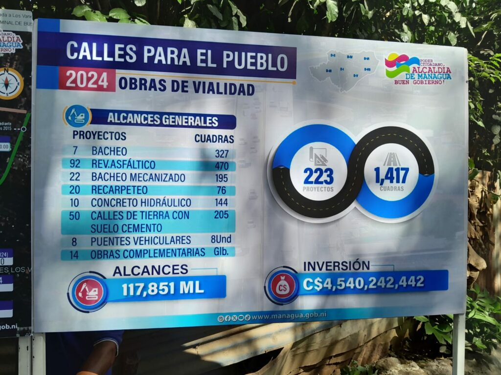 “Para este año tenemos una inversión significativa, más de 4 mil 570 millones de córdobas de inversión del Programa Calles para el Pueblo, son mil 417 cuadras que vamos a estar atendiendo en este municipio de Managua, más de 400 en recarpeteo asfaltico y más de 140 cuadras en concreto hidráulico”, precisó Rueda.