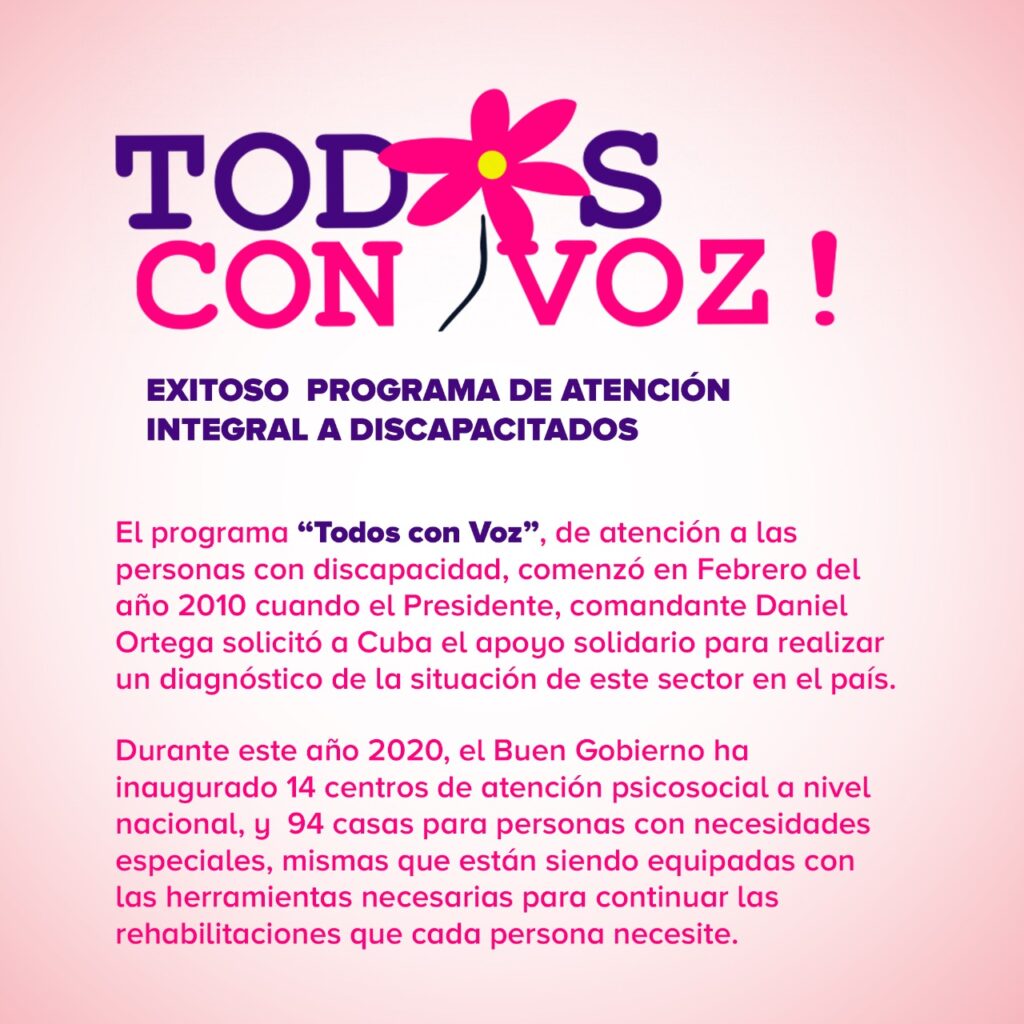 En el intercambio con nuestra Embajadora en Cuba, compañera Guisell Morales, la doctora Orraca expresó que el estudio, sin precedente, realizado exitosamente a nivel nacional, entre 2009 y 2011, por la brigada de 65 especialistas cubanos y jóvenes galenos nicaragüenses graduados de la Escuela Latinoamericana de Medicina (ELAM), fue posible únicamente con la Revolución Sandinista, por el apoyo decidido del Presidente y de la Vice Presidenta, del FSLN, sus secretarios políticos, sus alcaldes, del Ministerio de Salud y por la convicción internacionalista y de amor a Nicaragua por parte del equipo multidisciplinario de genetistas, ortopédicos, fisiatras y otros especialistas y técnicos de salud cubanos, para darles voz, atención y restituir los derechos de las personas con discapacidad.