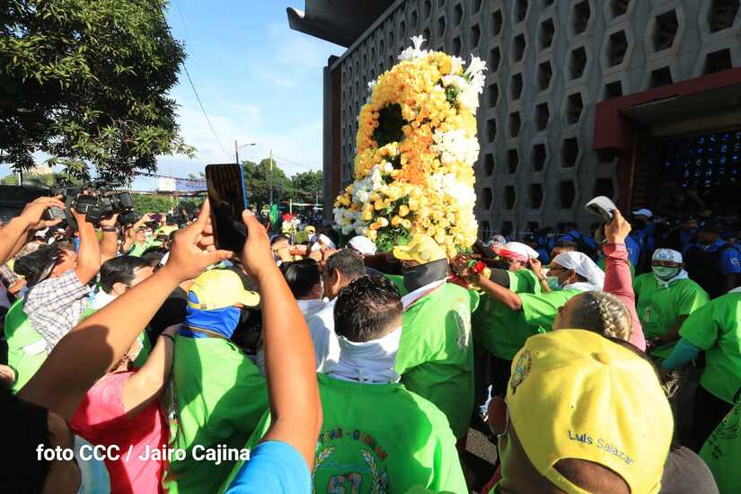 Luego de oficiarse una misa, el santo patrono de los capitalinos con sus miles de promesantes y cargadores tradicionales salieron de la Iglesia del barrio 19 de Julio en el sector del mercado Oriental para enrumbarse nuevamente hacia su morada en Las Sierritas de Managua.