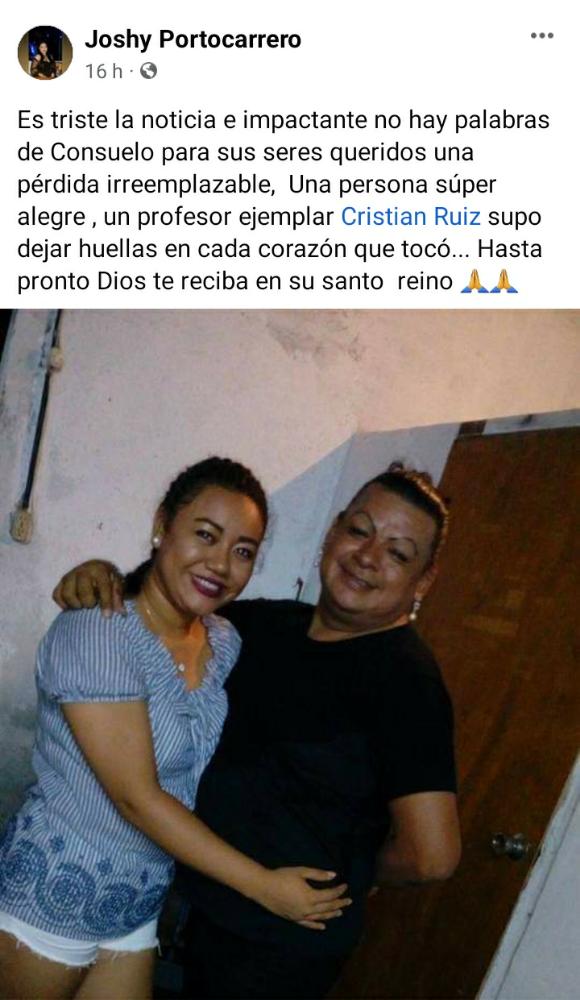 Joshy Portocarrero destacó “Es triste la noticia e impactante no hay palabras de consuelo para sus seres queridos una pérdida irreemplazable, Una persona súper alegre , un profesor ejemplar Cristian Ruiz supo dejar huellas en cada corazón que tocó… Hasta pronto Dios te reciba en su santo reino”.