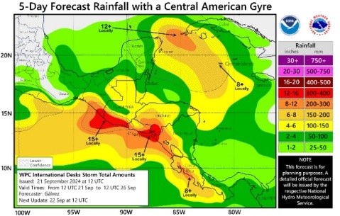 Los diferentes modelos están mostrando acumulados significativos en el occidente con valores aproximados a los 300 mm entre el 20 y el 25 de septiembre.