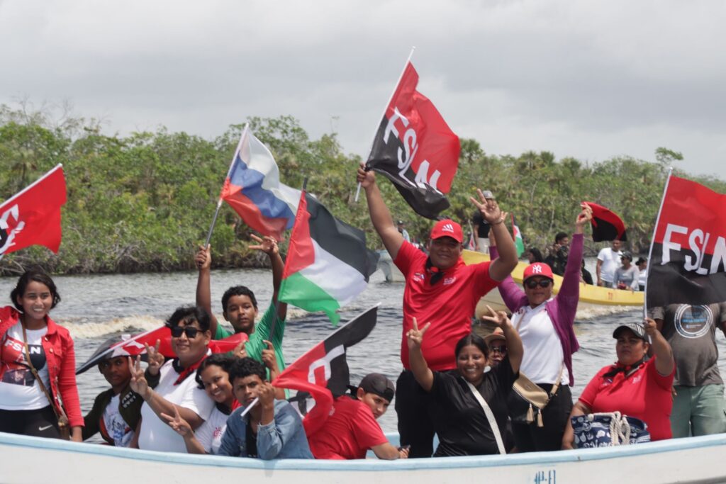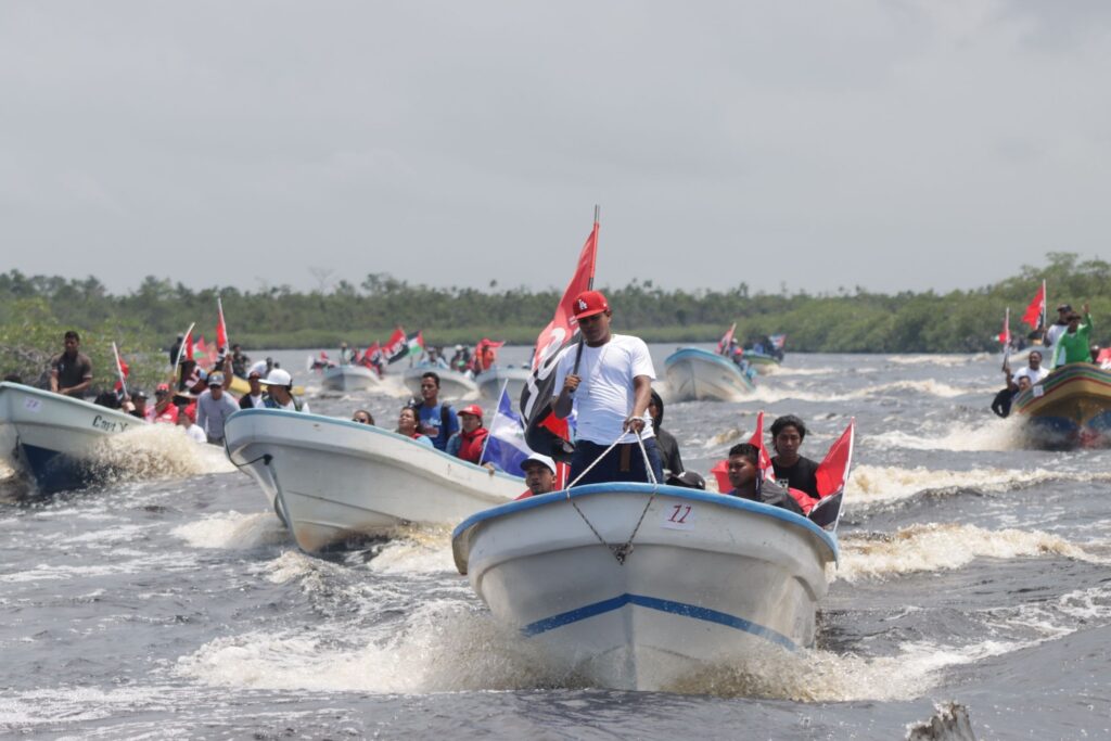 Como parte de la jornada del 46/19, la militancia sandinista y pobladores de los pueblos originarios de Puerto Cabezas realizaron una caravana acuática que salió de la comunidad misquita de Lamlaya hasta Karatá, ambas ubicadas en territorios indígenas del Caribe Norte.