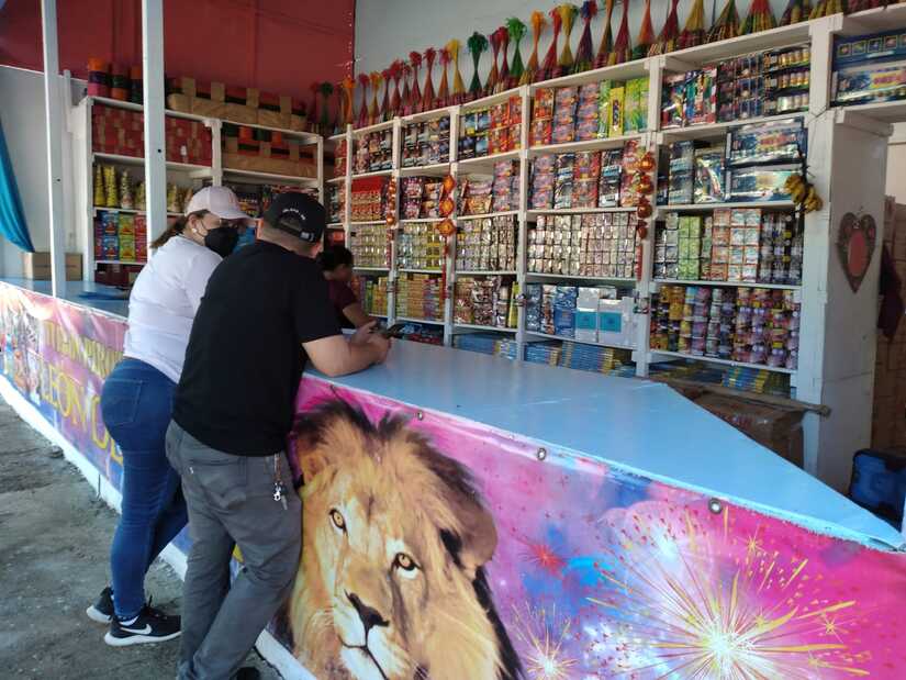 Los comerciantes expresaron que están listos con los productos de pólvora en espera de que se acerquen los clientes, ahora que ya inició el rezo del novenario a la Virgen María.