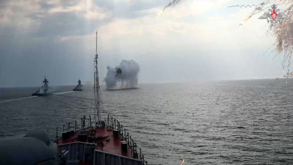 Durante los ejercicios, las tripulaciones entrenan para repeler ataques simulados desde el mar y el aire, destruir lanchas no tripuladas y drones enemigos, además de garantizar la seguridad de la navegación.