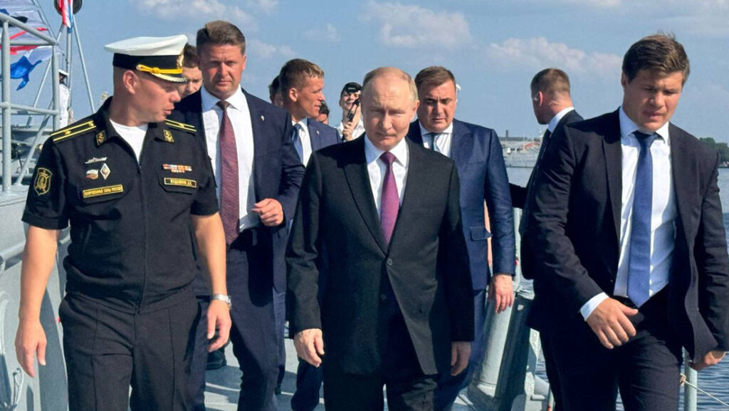 El presidente ruso, Vladímir Putin, visitó este domingo la fragata Almirante Grigoróvich, que participó en acciones para repeler los ataques de drones ucranianos contra la provincia rusa de Leningrado. La visita coincidió con el Día de la Marina, que se celebra en Rusia el 27 de julio.