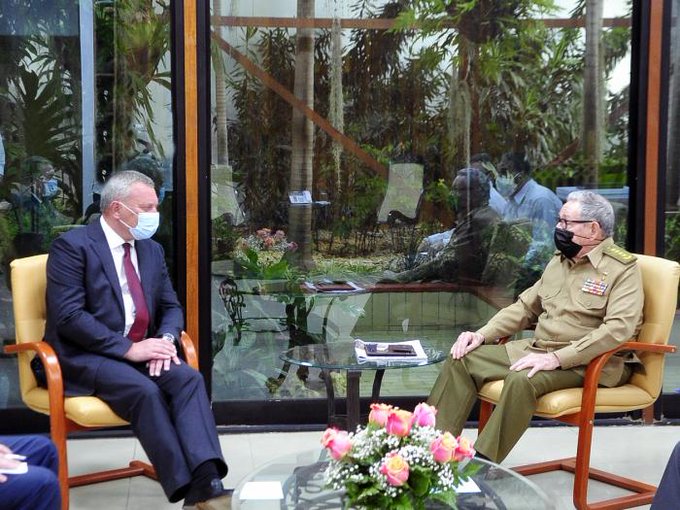 “El general de Ejército Raúl Castro Ruz intercambió con el vicepresidente del Gobierno de Rusia, Yuri Borisov. Destacaron excelente estado de relaciones bilaterales y coincidieron en voluntad de trabajar por su fortalecimiento. Se resaltó papel de Fidel (Castro) en desarrollo relaciones de Cuba y Rusia”, subrayó el canciller cubano, Bruno Rodríguez, Parrilla en su cuenta de la red social de Twitter.