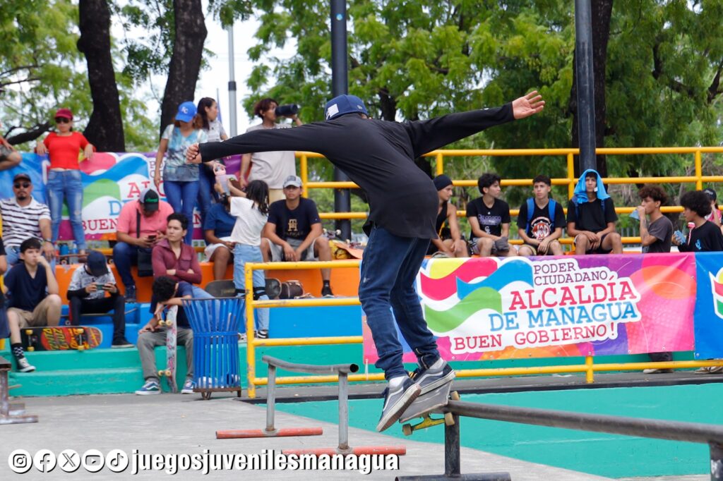 Más de 32 niños participaron este domingo, en los Juegos Juveniles 2024, que la Alcaldía de Managua organizó en la disciplina de skateboarding (patineta o monopatín), en el Parque Luis Alfonso Velásquez Flores.