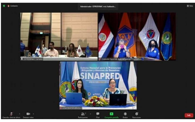 Ambos Eventos estuvieron presididos por el Licenciado Juan Cesario Salas Rosario, Presidente de la Comisión Nacional de Emergencias, Director Ejecutivo de la Defensa Civil Dominicana y Presidente Pro-Tempore de CEPREDENAC, junto a la Licenciada Claudia Herrera, Secretaria Ejecutiva de CEPREDENAC, con la participación de Representantes de los Entes Rectores de Gestión de Riesgo y Protección Civil de Centroamérica y República Dominicana; Costa Rica y Nicaragua participaron de forma virtual.
