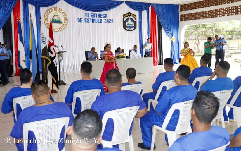 Autoridades del Sistema Penitenciario Nacional realizaron este lunes la tercera entrega de estímulos (reconocimientos escritos) a los presos y presas que se han destacado activamente en cursos educativos y actividades laborales en los diversos centros carcelarios de Nicaragua.