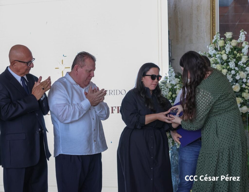 “La Compañera Camila Ortega, Directora de Nicaragua Diseña, ha entregado la medalla y el diploma a sus familiares, con el profundo respeto y reconocimiento de todos los diseñadores nicaragüenses y del pueblo talentoso y creativo de esta Nicaragua bendita y siempre digna y libre”, indicó un comunicado.