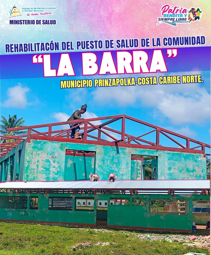 Más de mil 700 pobladores del municipio de Prinzapolka en la Costa Caribe Norte serán beneficiados con las mejoras de infraestructura y equipamiento en el puesto de salud de la comunidad La Barra.