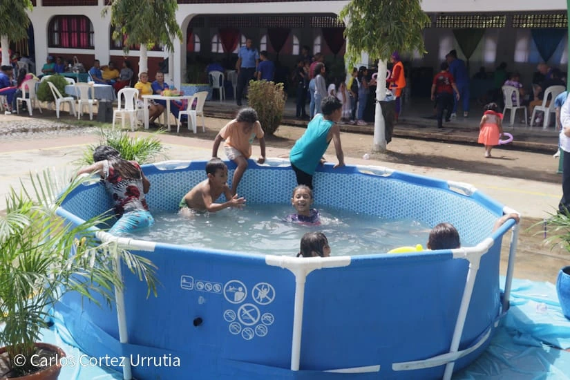 Para los más pequeños, la jornada incluyó, piscinas inflables para mitigar el calor, juegos infantiles, piñatas y actos culturales con música y danza.