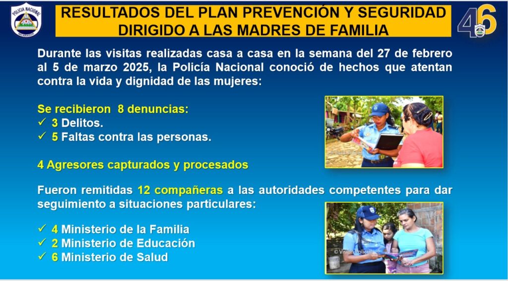 Por otro lado, fueron inauguradas dos Comisarías, una en el barrio el Coyolar en León y otra en el municipio de San Pedro del Norte, departamento de Chinandega, beneficiando a 12 mil mujeres.