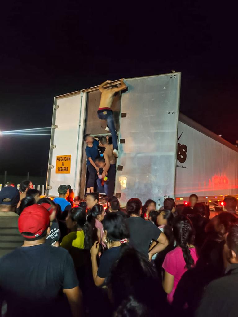 El Instituto Nacional de Migraciones (INM) de México comunicó que los agentes de seguridad escucharon gritos provenientes del interior del contenedor, cuando el vehículo se vio obligado a detenerse en un peaje. Un dispositivo de rayos gamma reveló la presencia de personas al interior del contenedor.