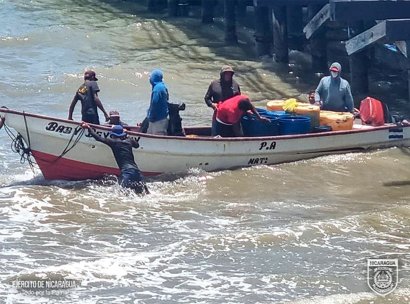 (Comunicado).- El Ejército de Nicaragua a través de sondeos rutinarios del Distrito Naval Caribe, a las embarcaciones que zarpan desde el muelle de la comunidad de Lamlaya, Región Autónoma de la Costa Caribe Norte, ocupó 1,000 pies tablar de madera de la especie Santa María, la que era trasladada de manera ilegal en una embarcación de nombre “Cap. Harly”, con 4 tripulantes a bordo, asimismo, ocupó 1,884 libras de pepino de mar de las especies “Pikachu y Café”, las que se encuentran en período de veda y eran trasladadas de manera ilegal en 3 embarcaciones con 18 tripulantes a bordo, a 30 millas náuticas al noreste de Cayos Miskitos.