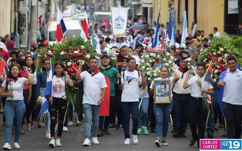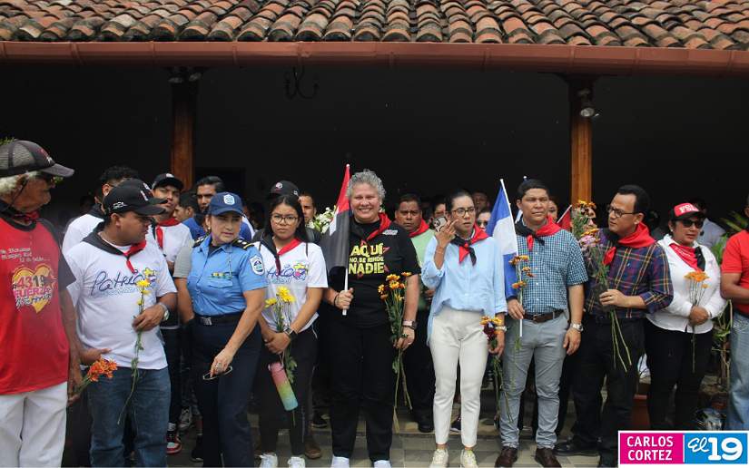 Seguidamente, se realizó una caminata desde la Casa Cuna Rigoberto López Pérez hasta la Casa Museo del Héroe Nacional, donde también se hizo guardia de honor y colocación de ofrendas florales en el altar revolucionario dedicado al joven poeta, quien además fue sastre, músico; pero, sobre todo, con su gesta heroica marcó el principio del fin de la tiranía somocista.