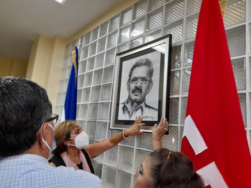 En el acto homenaje se develó un retrato en las oficinas de la Comisión de Asuntos Exteriores, la que presidió por más de 10 años. En el acto estuvo presente la esposa e hija del militante sandinista