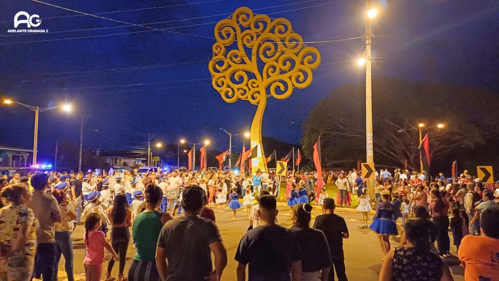 Las familias y autoridades del municipio de Nandaime en conmemoración del 51 aniversario del tránsito a la inmortalidad de los héroes de Nandaime, participaron en la inauguración y encendida de un Árbol de la Vida en la rotonda de esa localidad.
