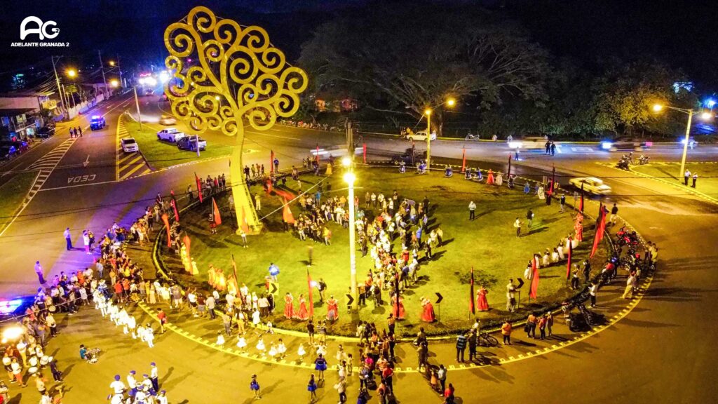 Las familias y autoridades del municipio de Nandaime en conmemoración del 51 aniversario del tránsito a la inmortalidad de los héroes de Nandaime, participaron en la inauguración y encendida de un Árbol de la Vida en la rotonda de esa localidad.