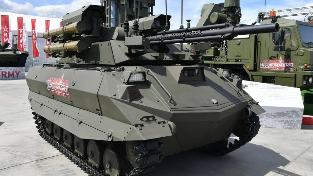 Este vehículo sobre orugas controlado remotamente está armado con un cañón automático de 30 mm, misiles guiados antitanque Ataka y lanzallamas Shmel.