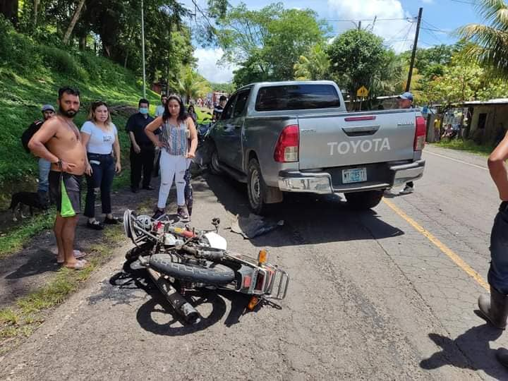 Según la información, el padre conducía su camioneta a exceso de velocidad e invadió el carril del motorizado, cuando se desplazaba de norte a sur en la carretera.